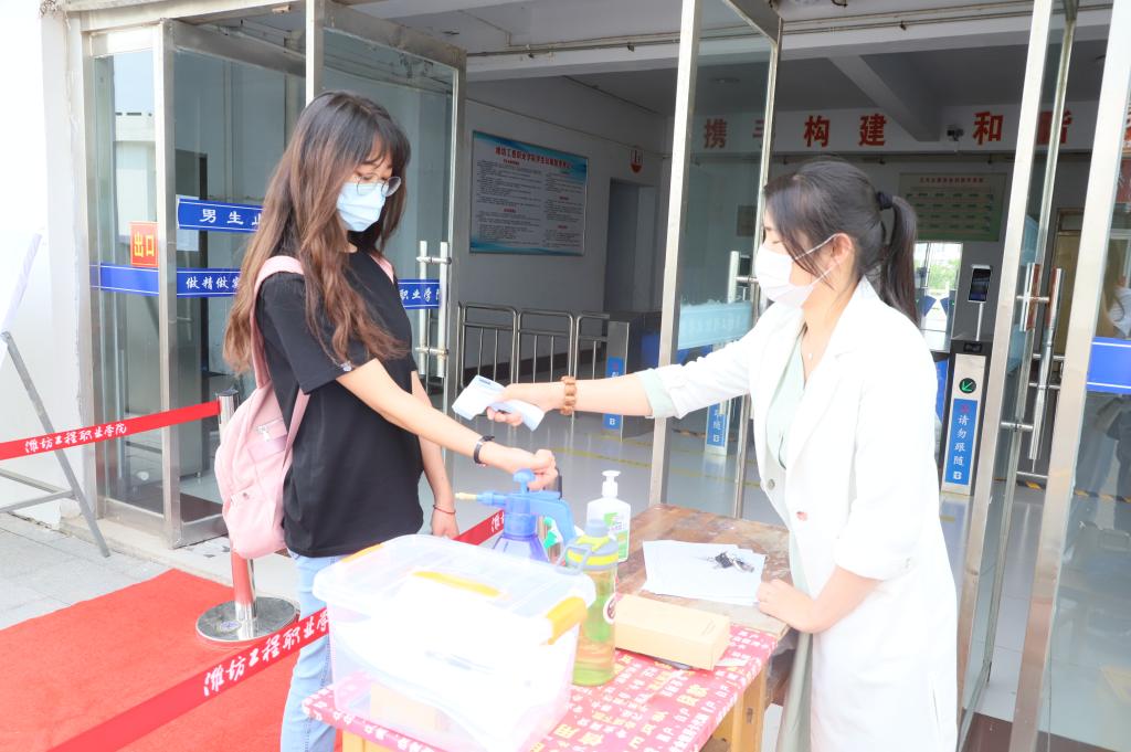 5月24日,潍坊工程职业学院迎来了2020年春季学期首批学生返校。为迎接同学们的到来,学生报到第一天,学院领导和相关工作人员早早来到学院东门,布置场地、临时观察点和入校通道等,做好了各项准备工作。