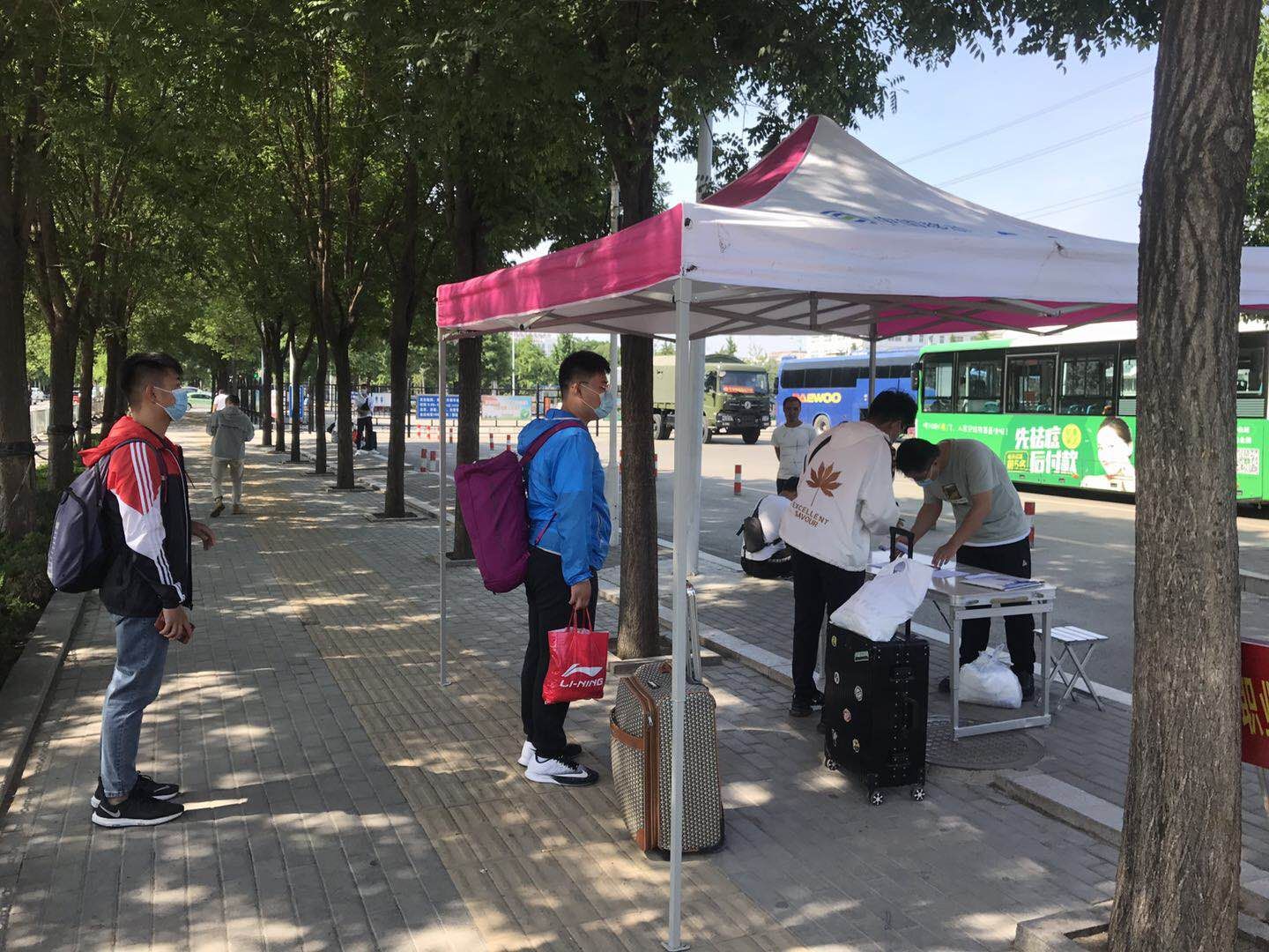 学院周密安排部署,在火车站和汽车站设置接站点,安排专人专车迎接返校学生。学生到站后,由专门人员负责返校学生的消毒,行李消毒,体温测量,信息登记,入座安排等工作,确保每一位返校学生的健康和安全。