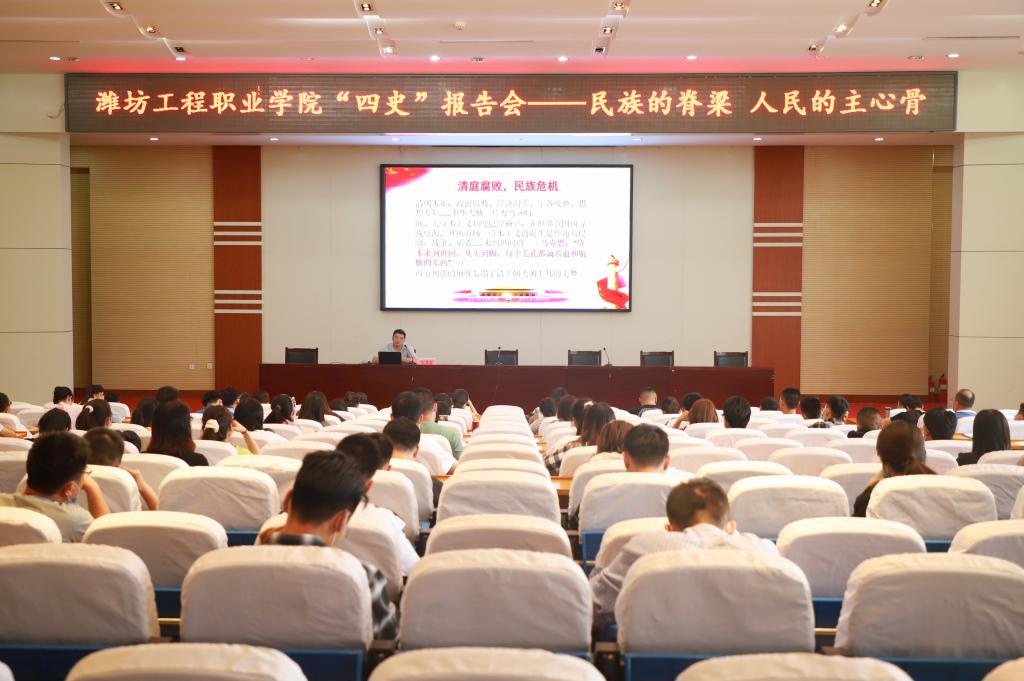 6月18日下午,我院在学术报告厅举行“四史”报告会,基础教学部副教授陈子君作题为《民族的脊梁,人民的主心骨》报告。各党总支(支部)党员和入党积极分子代表参加了报告会。