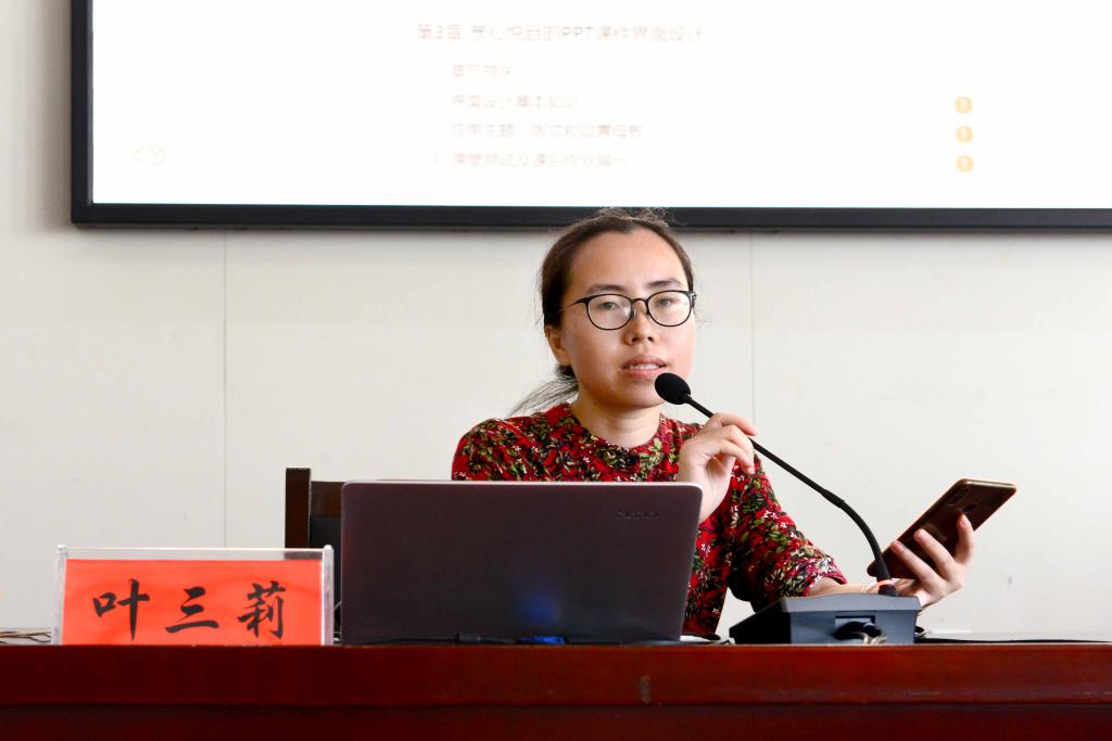 “一平三端”包括云平台、教室端、管理端和移动端,叶三莉老师现场演示了“学习通”APP软件具体操作流程,从课程创建、课件制作、课件网络储存、学生讨论议题回复等方面进行了详细的讲解和培训。