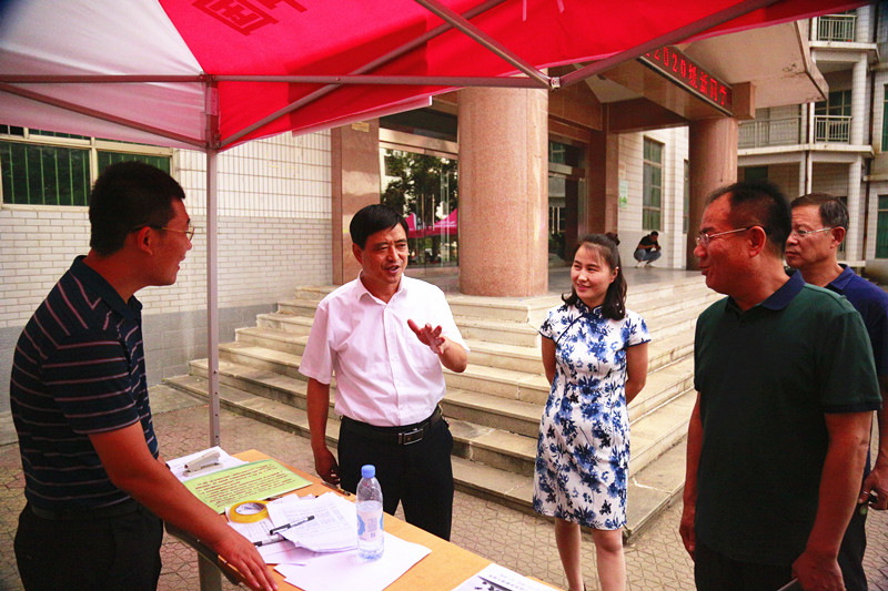 王金明实地察看了新生报到处,详细了解了新生报到流程及新生报到情况,依次来到缴费处、餐厅等,对车辆停放调度、学生用餐安全和质量等方面提出了具体要求。同时,他对中专部近年来在方便学生缴费、基础设施提升改造方面做的努力给予了肯定。他向在一线开展迎新工作的人员了解了迎新工作的落实细节,对中专教学部热情、周到、细致的迎新服务工作表示肯定。