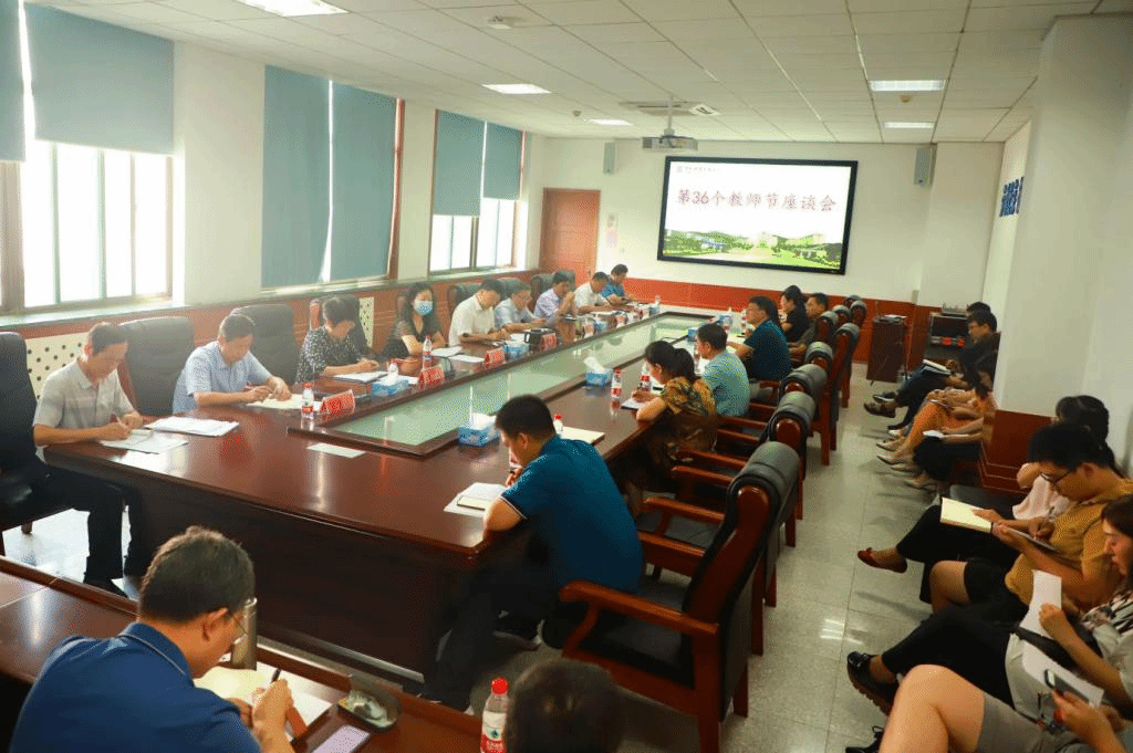 9月10日下午,学院在海岱阁220会议室召开座谈会,庆祝第36个教师节。党委书记肖明胜,党委副书记、院长高立伯,党委副书记李琳,副院长王金明,纪委书记那菊华,副院长韩振华、王守庆出席会议。相关职能部门负责人,高层次人才、正高、技能名师以及年轻教师代表参加座谈。 会议由高立伯主持。