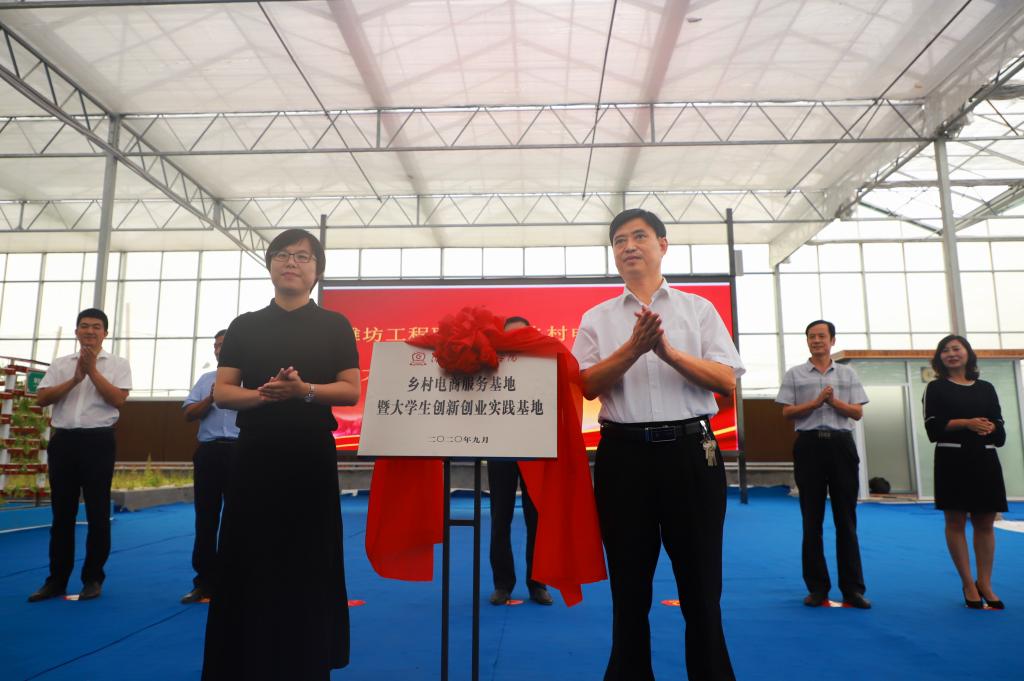 9月11日上午,潍坊工程职业学院首个乡村电商服务基地暨大学生创新创业实践基地在高柳镇九州农庄揭牌成立。潍坊工程职业学院副院长王金明、青州市副市长翟敏出席活动并揭牌,潍坊工程职业学院、高柳镇政府、高柳镇乡村振兴服务队、青州九州农庄蔬菜专业合作社负责人及代表共同参加。
