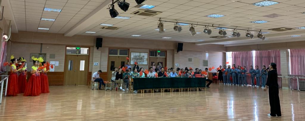 活动伊始,全体党员现场交纳党费,肖明胜带头缴纳。随后,参加活动人员共同欣赏由第二党支部入党积极分子、教师党员带来的爱国主义文艺演出。歌伴舞《啊,中国的土地》、歌曲《红旗飘飘》、舞蹈《红旗颂》、朗诵《我!向人民报道》,每一个节目都流露出对祖国母亲的礼赞、对革命先烈的缅怀、对幸福生活的感恩。演出在师生合唱《我和我的祖国》中结束。台上台下同场一首赞歌,共挥一面国旗,大家的爱国、爱党之情溢于言表。