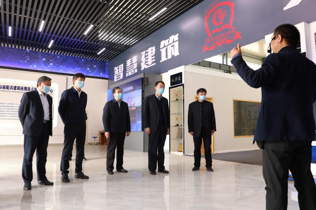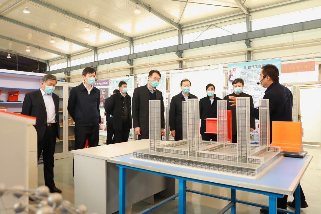 王旭东一行参观了建筑工程实训中心、学前教育实训中心、卡特彼勒实训中心,以及东校区建设中的花卉学院建设项目。调研中,学院领导介绍了学院的基本情况和办学特色,调研组一行对我院改革发展的成绩给予充分肯定,认为我院工程类办学特色鲜明,在校企合作、产教融合等方面成绩突出,实践实训条件先进,与国内外大型知名企业深入合作,在省内具有领先地位。调研组对学院下步改革发展工作提出要求,在“十四五”规划开局之年,要进一步深化改革,积极探索新机制解决学院在改革中所面临的问题,并表示主管部门将通过多渠道、多措施,从各个方面支持学院深入改革发展。