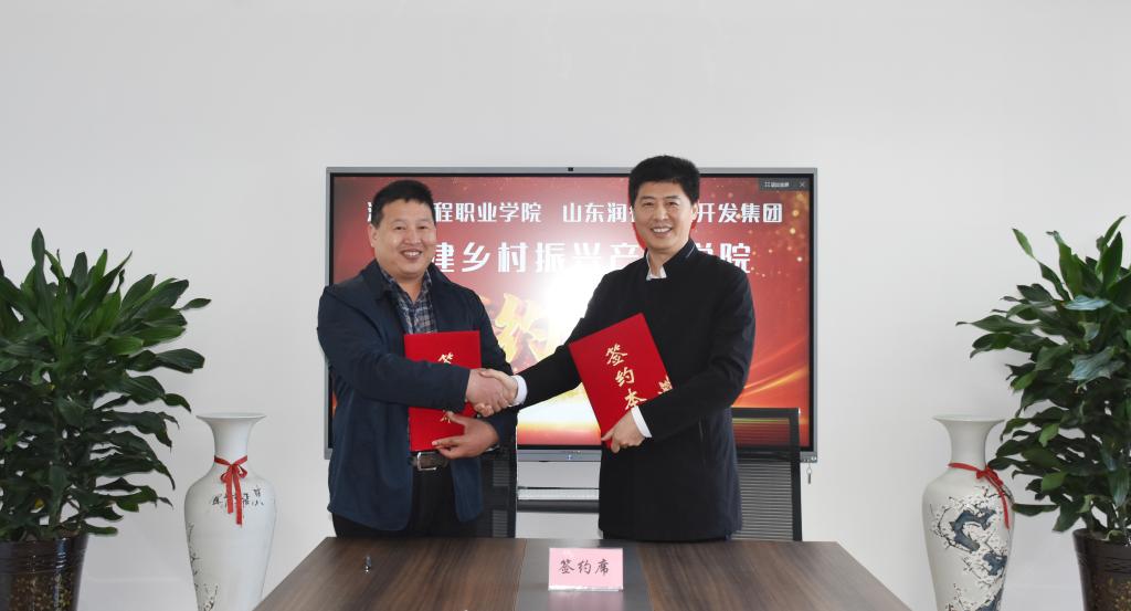 5月17日,我院与山东润德农业开发集团共建乡村振兴产业学院签约仪式在润德集团总部大楼多功能会议厅举行。学院党委委员、党政办公室主任赵庆松出席并签约,科研产业处、经济管理系主要负责人参与活动。