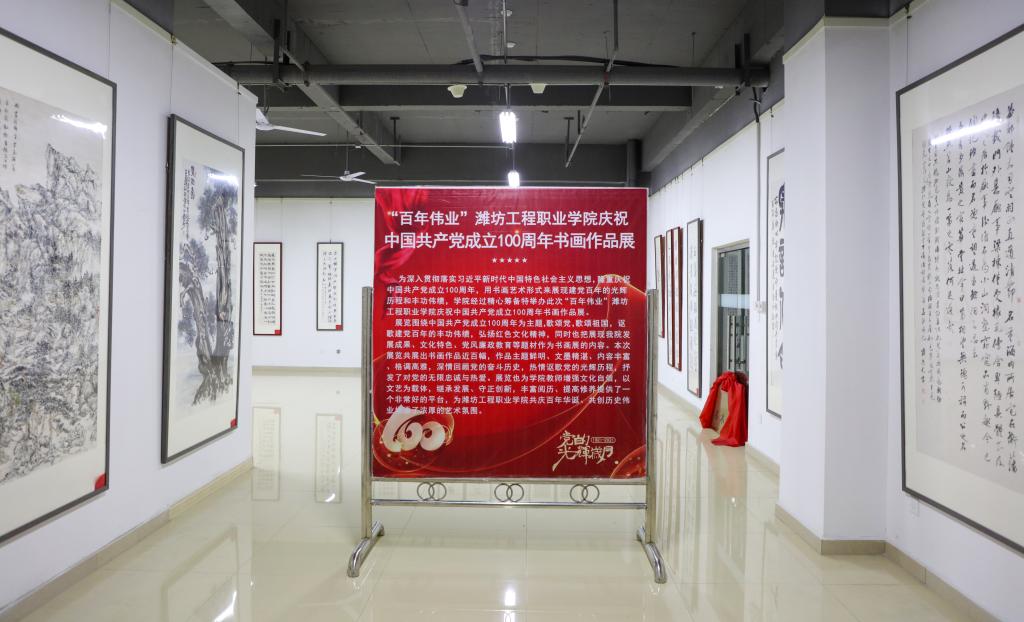 6月29日,潍坊工程职业学院庆祝建党100周年书画展在凤凰艺术学院开展。副院长王金明、党委委员赵立增参观了书画作品展,凤凰艺术学院院长陪同活动。
