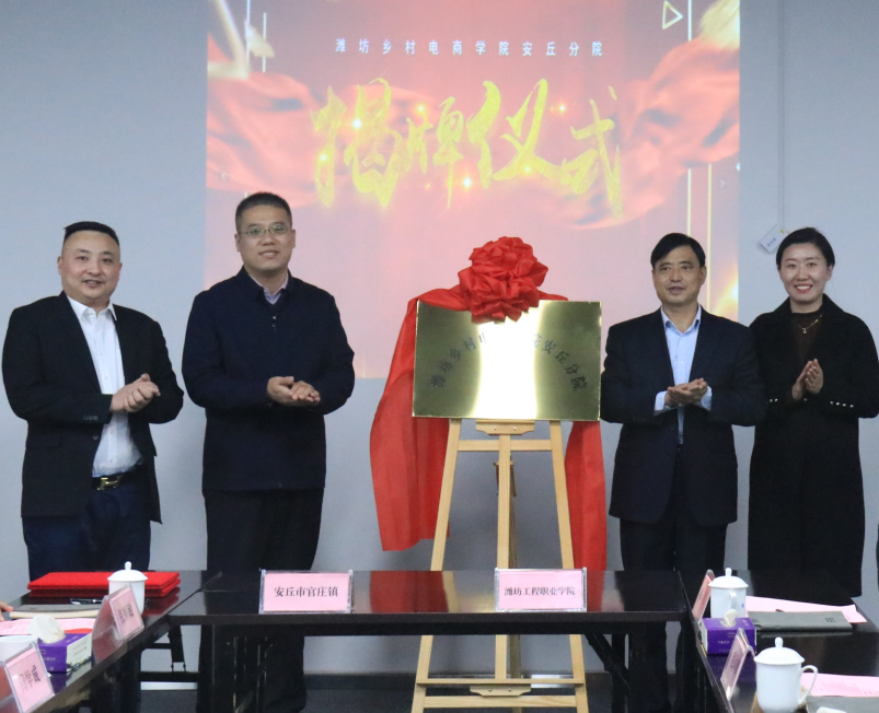 12月3日,潍坊乡村电商学院安丘分院揭牌仪式举行。学院副院长王金明与安丘市官庄镇镇长赵锦华共同为分院揭牌并签订合作协议。电商分院的揭牌成立,是电商学院助推地方电商产业发展、全面服务乡村振兴战略的新举措,为地方发展和校政企深入合作提供了新动能,对于推进产教深度融合,打造山东省乃至全国有影响力的电商人才培养示范基地具有重要意义。