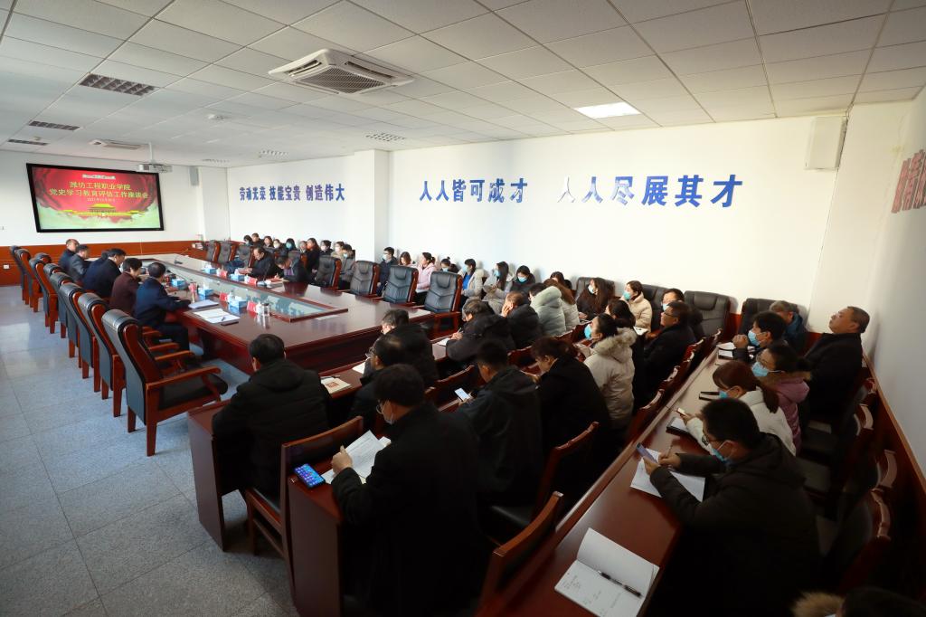 12月29日上午,市综合督导组齐延伟一行来院开展党史学习教育评估工作。党委书记肖明胜,院领导王金明、那菊华、韩振华、冯永光、赵立增、赵庆松出席座谈会,学院各部门、单位相关负责人和师生代表参会。