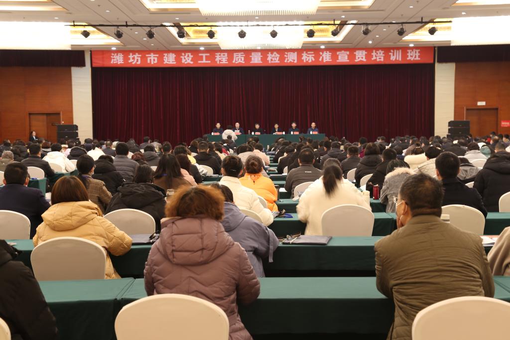 为充分发挥学院社会服务功能,2月24日,我院承办的潍坊市建设工程质量标准宣贯培训班启动,并举办第一期培训。副院长王金明,潍坊市建筑业发展服务中心领导许增贤、邢新华、王学进出席开班仪式。来自全市检测机构业务主管部门,检测机构技术负责人、实验室主任、业务室主任等300余人参加。