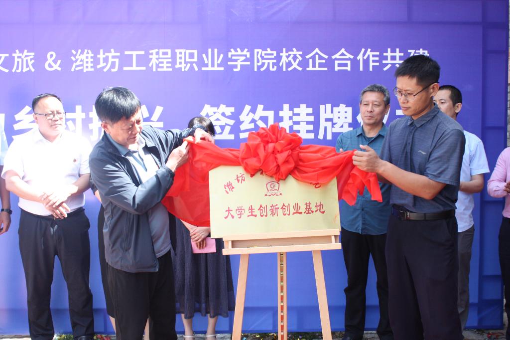 5月26日上午,学院校外实践基地“文化育人实践基地”和“大学生创新创业基地”在青州市庙子镇杨集岸青文创谷揭牌成立。工会、科研产业处、质量管理与绩效考核办公室、经济管理系相关负责人以及青州市庙子镇政府、青州途云文旅投资发展有限公司相关负责人参加揭牌仪式。