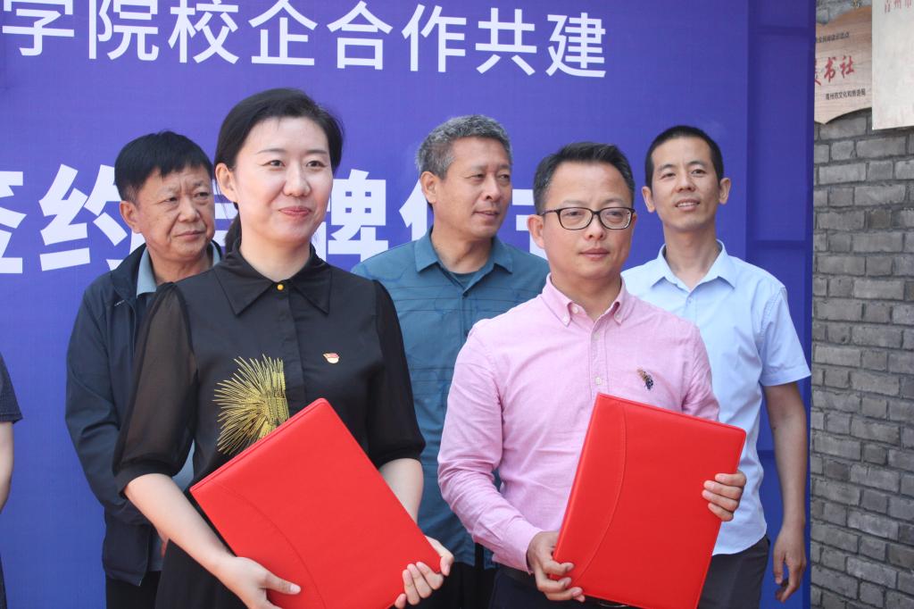 仪式上,“文化育人实践基地”和“大学生创新创业基地”正式揭牌成立,本着“资源共享、优势互补、互惠互赢、共同发展”宗旨,经济管理系负责人与企业负责人共同签订校企共建实践基地协议书。