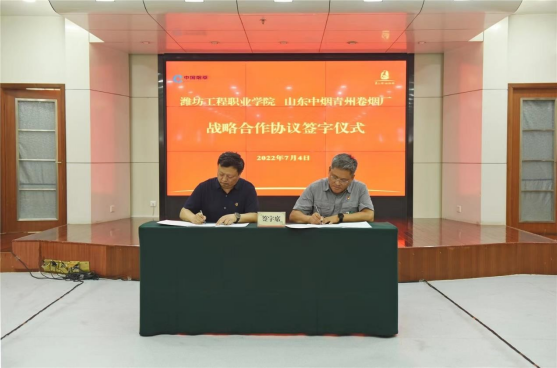 7月4日,我院与山东中烟青州卷烟厂战略合作协议签约仪式在青州卷烟厂举行。党委书记肖明胜、青州卷烟厂党委书记孟庆华代表双方共同签署了战略合作协议。副院长王金明、青州卷烟厂厂长张志伟、副厂长山强等参加活动。签约仪式由张志伟主持。