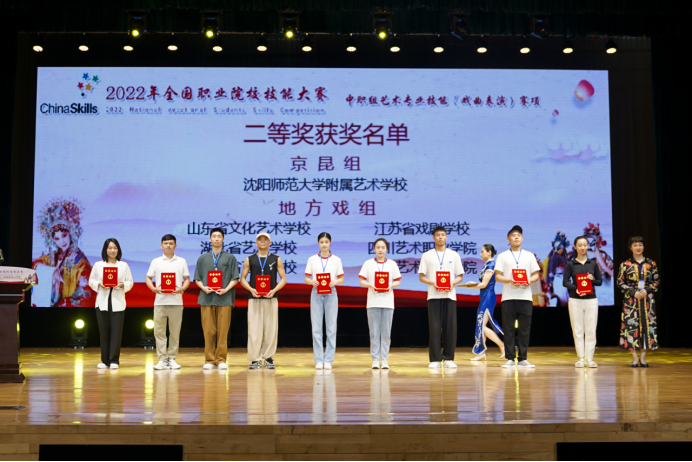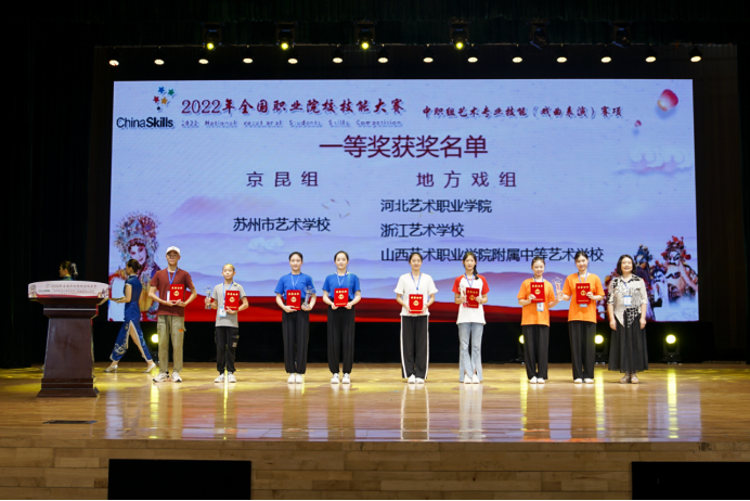 其中,苏州市艺术学校获得京昆组一等奖,河北艺术职业学院、浙江艺术学校、山西艺术职业学院附属中等艺术学校获得地方戏组一等奖;沈阳师范大学附属艺术学校获得京昆组二等奖,山东省文化艺术学校、湖北省艺术学校、湖南省艺术学校、江苏省戏剧学校、四川艺术职业学院、陕西艺术职业学院获得地方戏组二等奖;金华艺术学校、青岛艺术学校获得京昆组三等奖,洛阳职业技术学院、广东舞蹈戏剧职业学院、衡阳市艺术学校、福州市艺术学校、厦门艺术学校、安徽艺术职业学院、湖北黄冈艺术学校、安徽黄梅戏艺术职业学院获得地方戏组三等奖。获得一等奖代表队的指导教师荣获“优秀指导教师”奖。