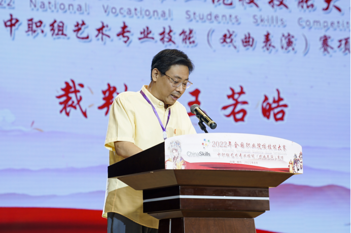 闭幕式上,赛项专家组组长杨向国对整个比赛进行了点评。杨向国表示,本次大赛精彩纷呈,公平公正,赛出了风格,赛出了水平。赛前各个院校精心组织选拔参赛选手,通过比赛涌现出了一大批有潜力、有发展的优秀青年选手。他希望各个院校今后在培养中职学生时,文武并重,全方面发展,在苦练基本功的同时,加强剧目教学课程,学习本剧种传统优秀剧目,丰富剧目储备,全方面提高学生的综合素质。最后,杨相国对协办方潍坊工程职业学院的充分准备、热情周到的服务表示充分的肯定和感谢。
