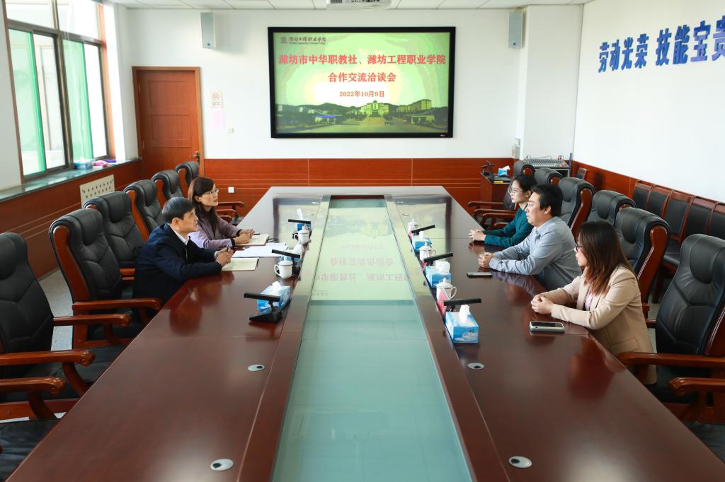 10月9日上午,潍坊市中华职业教育社副主任兼秘书长代卫平一行3人来院考察调研、洽谈合作。副院长王金明出席交流洽谈会,国际交流学院负责人参加活动。