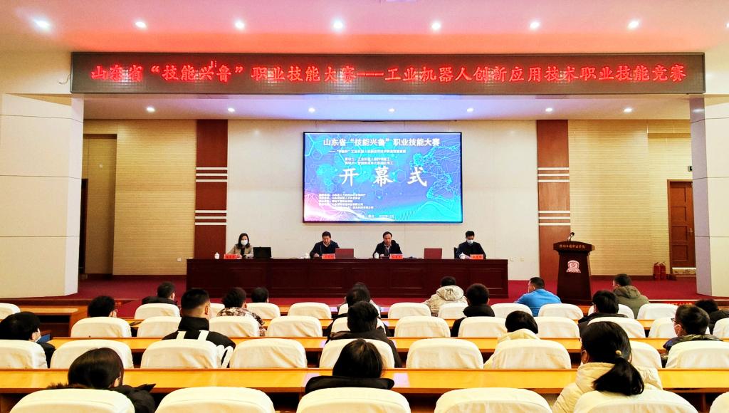 12月3日, 2022年山东省“技能兴鲁”职业技能大赛—工业机器人创新应用技术竞赛开幕式在我院举行。山东省技能人才开发协会副会长、山东工业技师学院党委副书记张品文,学院党委委员、统战部部长、党政办公室主任赵庆松,裁判长岳明君出席会议,教务处、机电工程学院、协办单位负责同志,专家组、裁判组、监督仲裁组成员,参赛学校领队、指导教师、参赛选手代表参加开幕式。