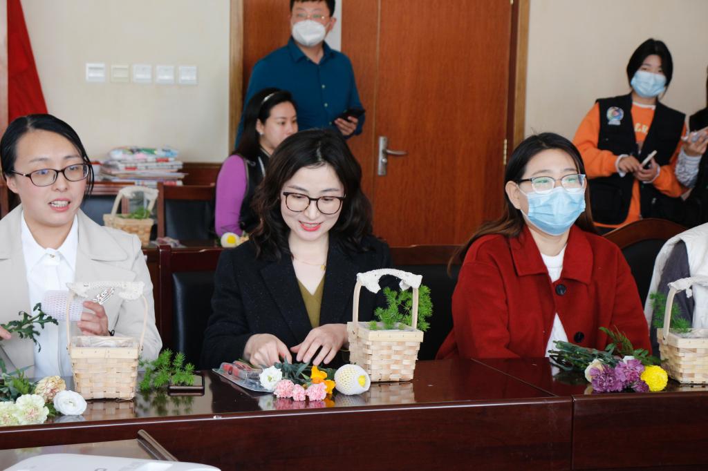阳春三月,人面桃花相映红;三八佳节,巾帼奉献显风流。3月7日下午,我校在海岱阁619会议室组织开展“芳华悦动·美美与共”插花艺术体验活动,活动邀请了花艺老师现场授课,女教职工代表参加了本次活动,副院长王金明出席活动,并代表学校党委送上节日祝福,并传达了潍坊市各界妇女纪念“三八”国际妇女节113周年暨加快建设新时代社会主义现代化强市巾帼建功推进会议精神。