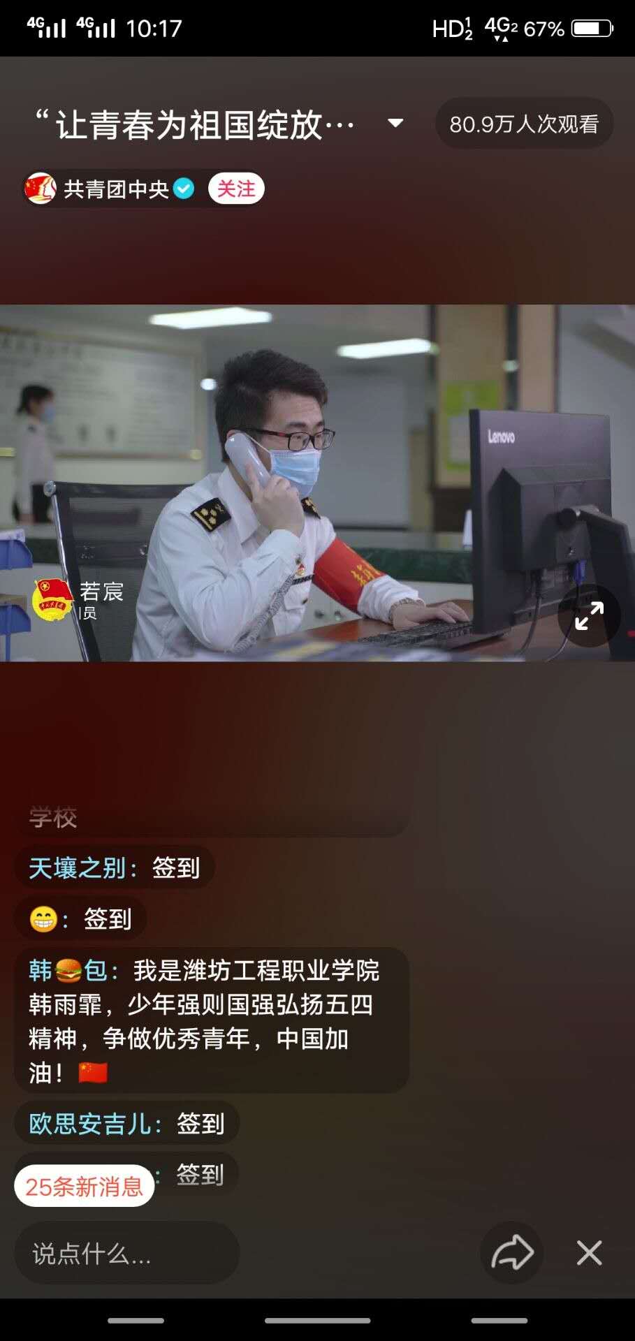 5月4日上午10时,共青团中央以举办了“让青春为祖国绽放”网上主题团日活动。我院团员青年准时走进直播间,通过微博、微信、B站等各大网络平台@共青团中央账号,与全国青年一起为伟大的祖国发声,弘扬青春正能量。