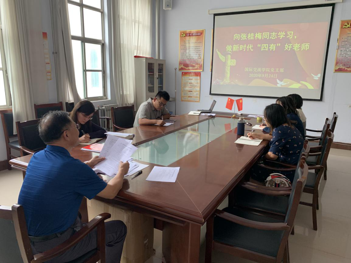 9月24日下午,国际交流学院党支部在3202会议室组织开展了“向张桂梅同志学习,做‘四有’好老师”主题教育活动,全体教师参加。