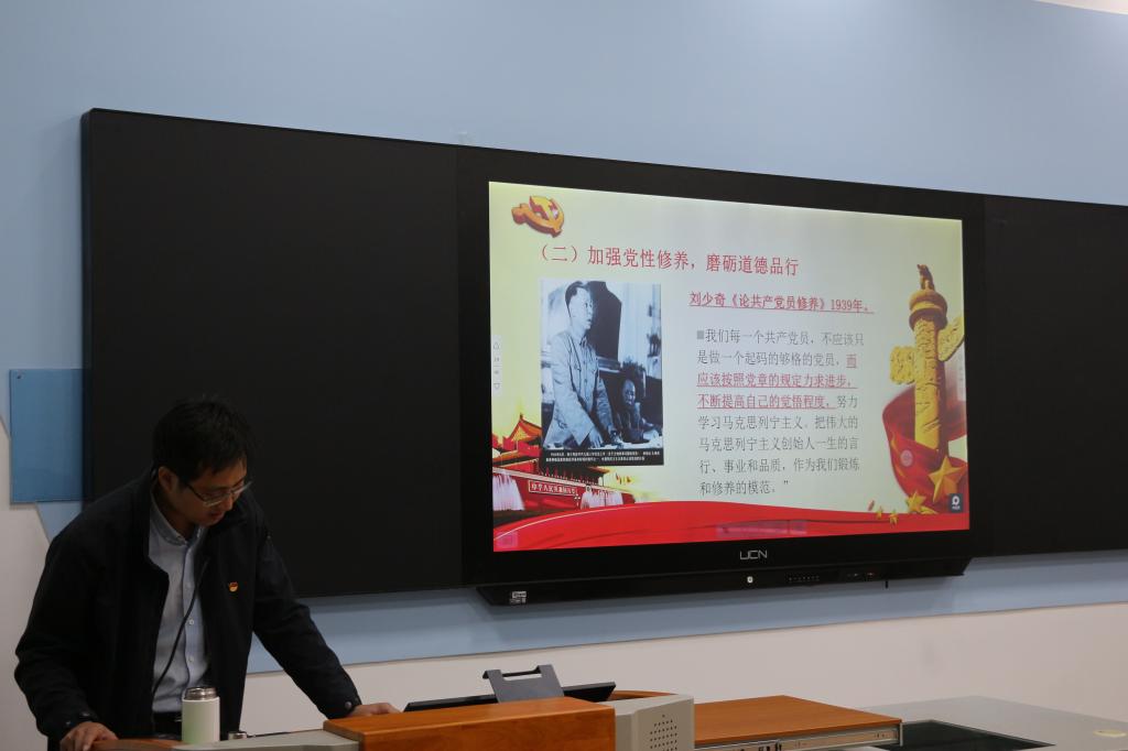 10月15日下午,汽车工程系党支部组织委员在4104教室为党支部全体教师、2020年度党员发展对象以及2020年度入党积极分子作题为“不忘初心、担当作为,做合格共产党员”主题党课。