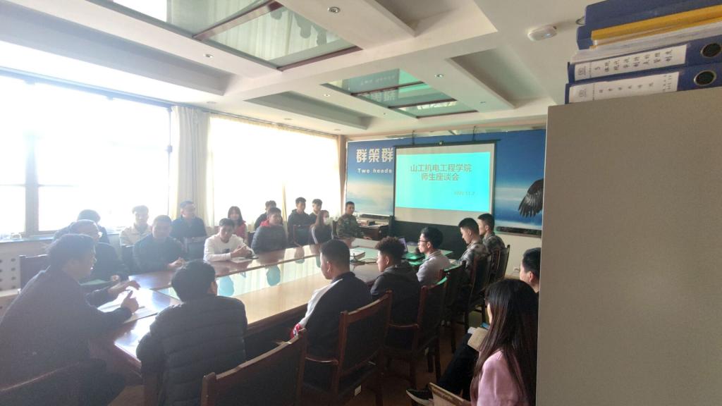 11月2日,山工机电工程学院召开师生代表座谈会,通过发放征求意见表、现场汇报等形式,广泛征求师生对学生管理、学院教学工作等方面的意见建议。该院院长主持会议,相关部门负责人、各专业骨干教师、辅导员、同学代表参加座谈。