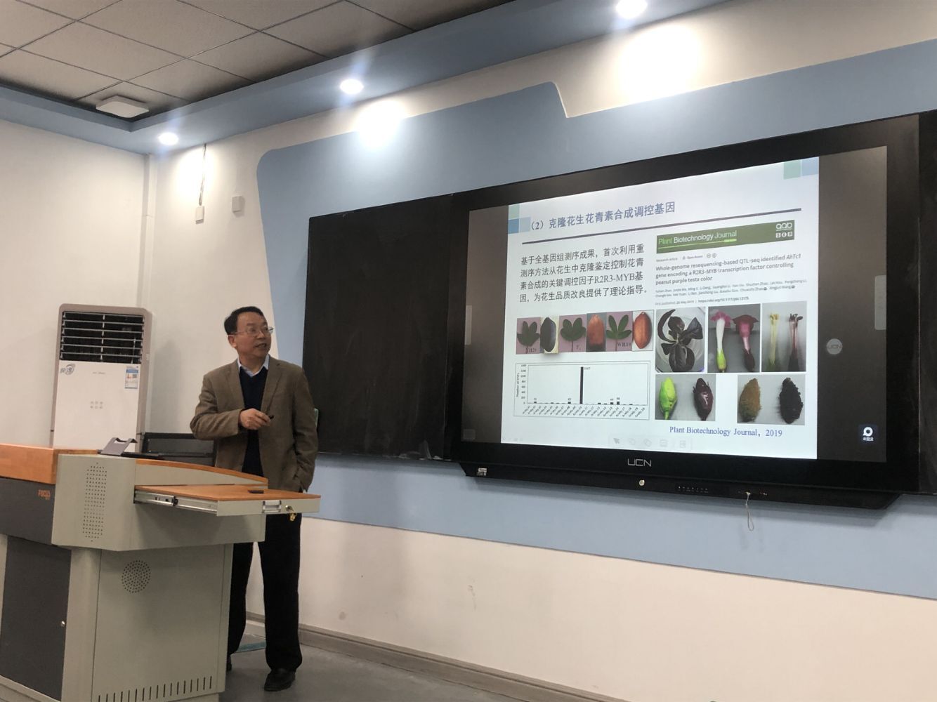 12月9日,山东省“泰山学者”特聘专家,山东省农业科学院“杰出人才”特聘专家,山东省农业科学院生物技术研究中心主任,山东大学、山东师范大学博士生导师王兴军教授来我院作“花生高油酸分子育种及推广应用”的专题报告,花卉学院院长主持报告会,花卉学院教师及学生代表参加。