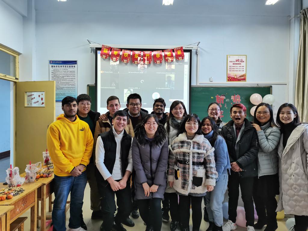 踏歌起舞,辞旧迎新。12月31日,国际交流学院中外学生迎新年联欢会在尚德楼402教室举行。国际交流学院全体教师、航空工程学院部分学生及滞留国外的14名国际学生通过线上线下相结合的方式欢聚一堂,共同迎接新的一年。