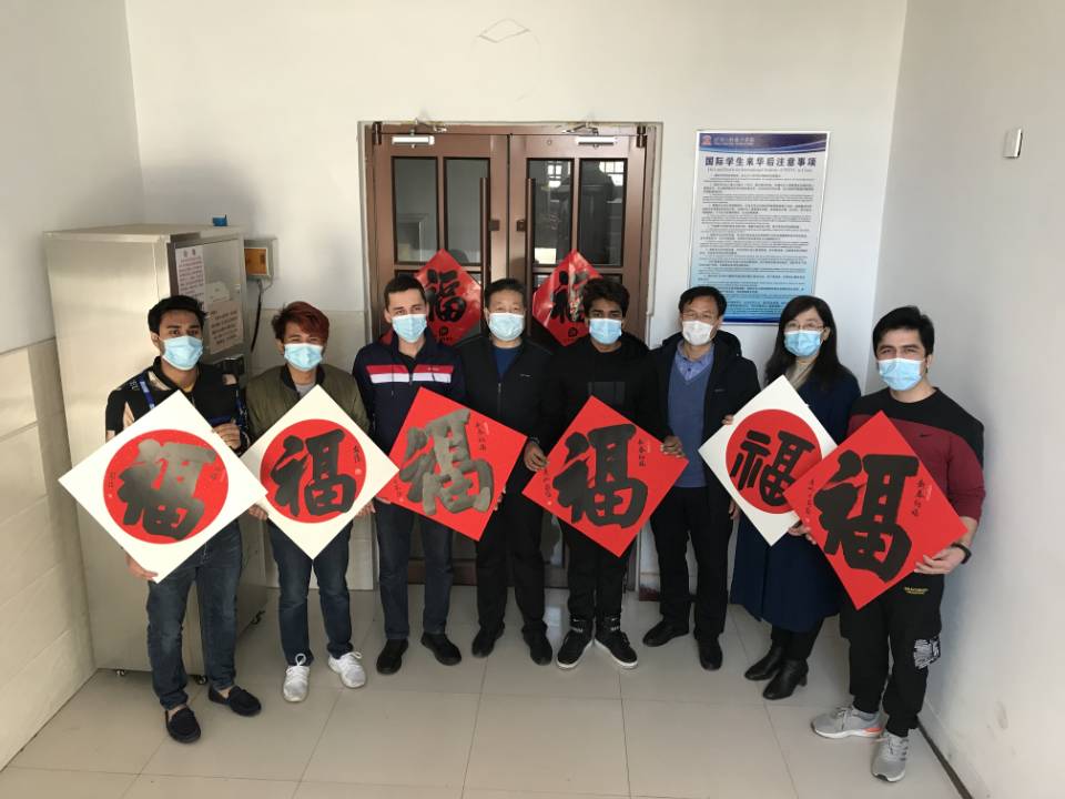刘俊超与留校国际学生进行了亲切交流,详细了解了他们在校的学习和生活情况,并为他们赠送了书法家协会书写的“福”字书法作品。国际学生对当地政府和学校的关心表示感谢,并表示会遵守学校的相关规定,在学校过一个欢乐祥和的春节。