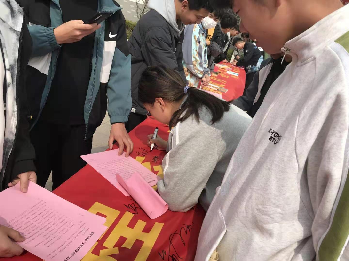 为进一步营造健康的学习、生活氛围,摈弃校园陋习,养成好习惯。近日建筑工程系团总支在明德教学楼前举办了“文明习惯养成月”签名启动仪式。