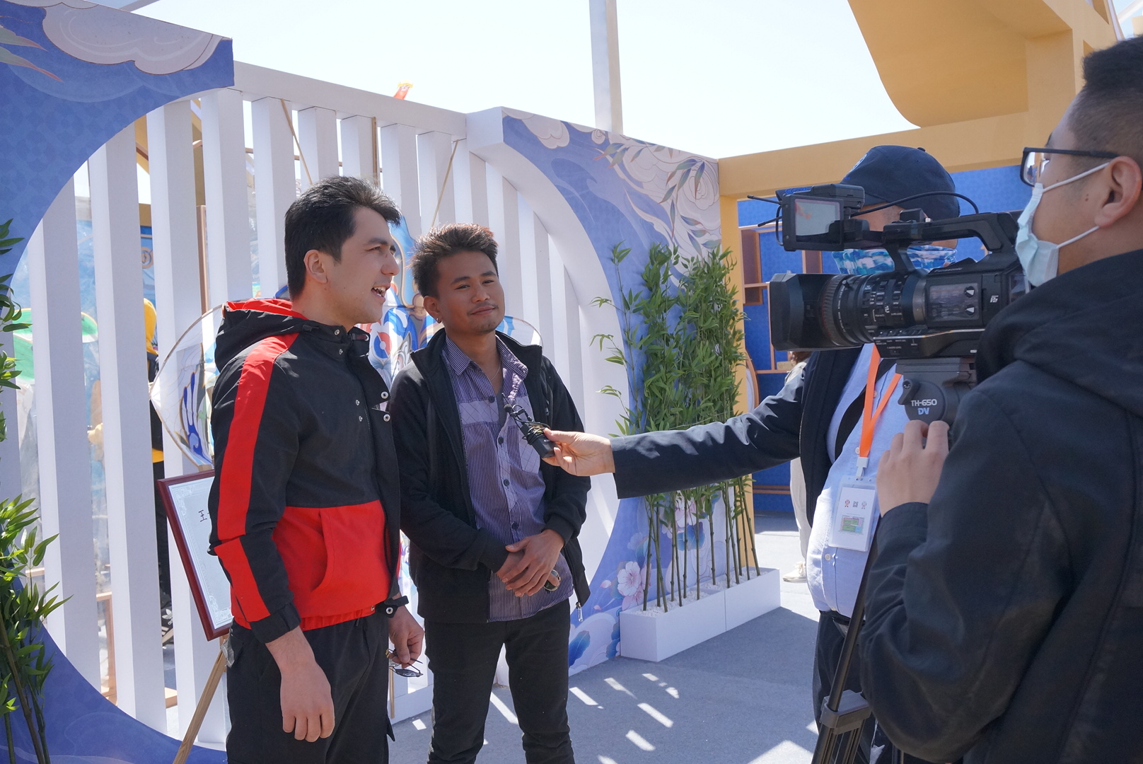 国际风筝放飞现场万鸢齐飞,留学生纷纷拍照留念,用镜头记录下精彩瞬间,并分享给远在故乡的亲朋好友。活动现场,留学生与观众互动交流,我院留学生叶问和杨洋还接受了潍坊电视台采访,用流利的汉语表达着对中国风筝文化的热爱。