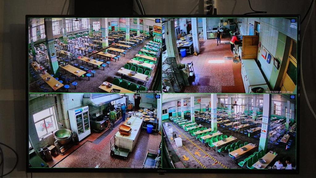 通过建造透明玻璃窗或玻璃墙以及安装电子显示屏等方式,中专教学部餐厅展示食堂清洗区、消毒区、操作区、储藏室、留样柜、分餐区、餐厅等关键区域,实现食品保管、加工、供餐、就餐、留样、餐具清洗消毒、废物处理等操作过程透明化,让广大师生、家长能够实时观看食品加工制作全部环节,建立了“明厨亮灶视频溯源平台”,有力地保障了学生“舌尖上的安全”。