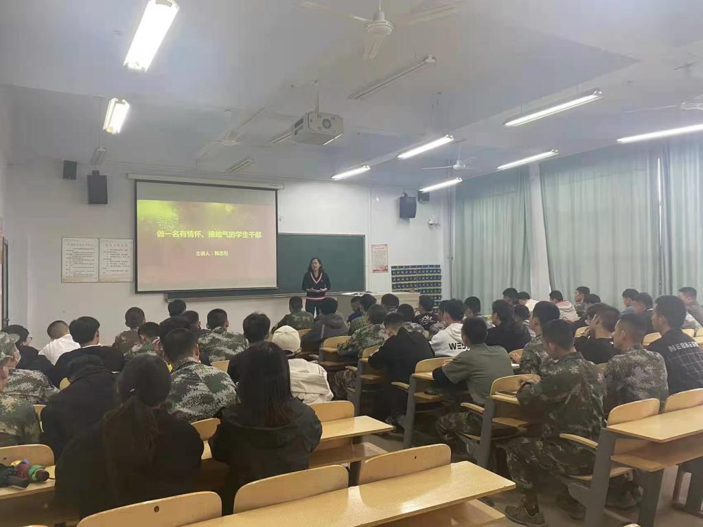 会上,机电工程学院党支部负责人就近期学生管理工作做了相关部署,以“做一名有情怀、接地气的学生干部”为主题展开培训,强调学生干部要牢记初心使命,践行学生本分,履行好服务学生、协助老师的职责,并对学生干部提出三点期望:一是加强思想修养,要有服务意识和奉献精神;二是明确自身职责与义务,切实提高工作能力;三是要善于处理好学习、生活与工作之间的关系,寻找平衡点。