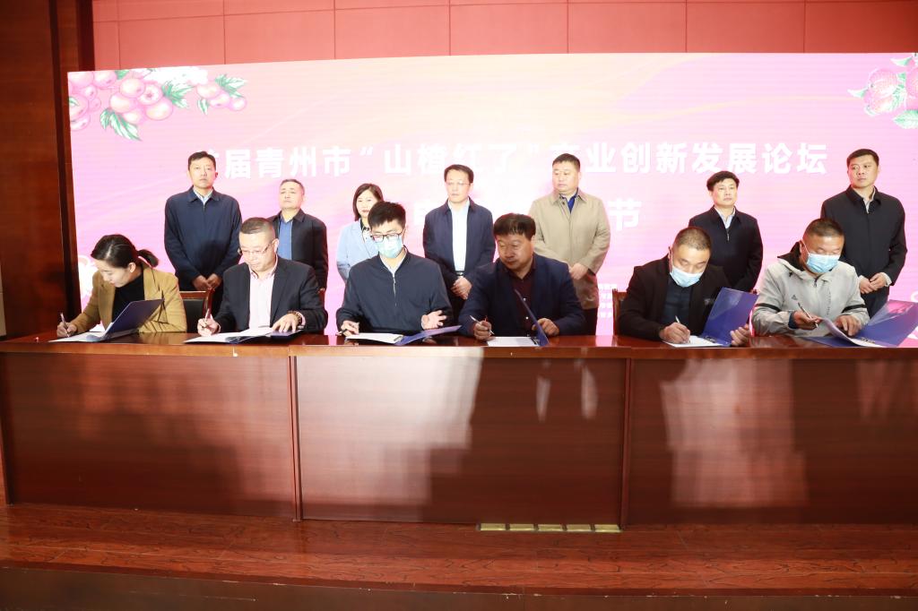 10月23日上午,首届青州市“山楂红了”产业创新发展论坛暨电商直播节正式启动。经济管理系与王坟镇政府、青州市泓德信息科技有限公司共同签约成立了乡村振兴电商人才培育基地。