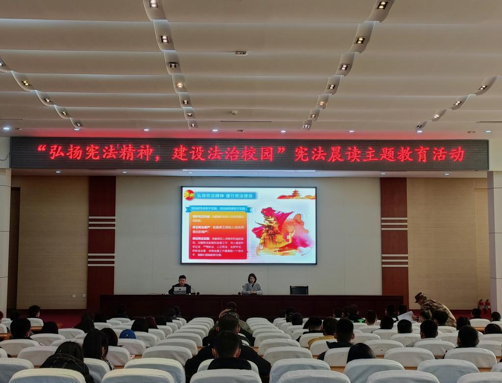 为深入学习宣传习近平法治思想,弘扬宪法精神,维护宪法权威,12月4日,我院团委学生处组织开展了“弘扬宪法精神,建设法治校园”宪法晨读主题教育活动。