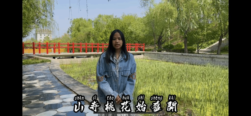 活动中,国际学生跟随国际中文教师学习“联合国中文日”的由来,深入了解汉字的起源演变发展以及二十四节气,并学唱歌曲《中国话》。活动最后,在校国际学生诵读了《春晓》《春夜喜雨》《大林寺桃花》等诗歌。