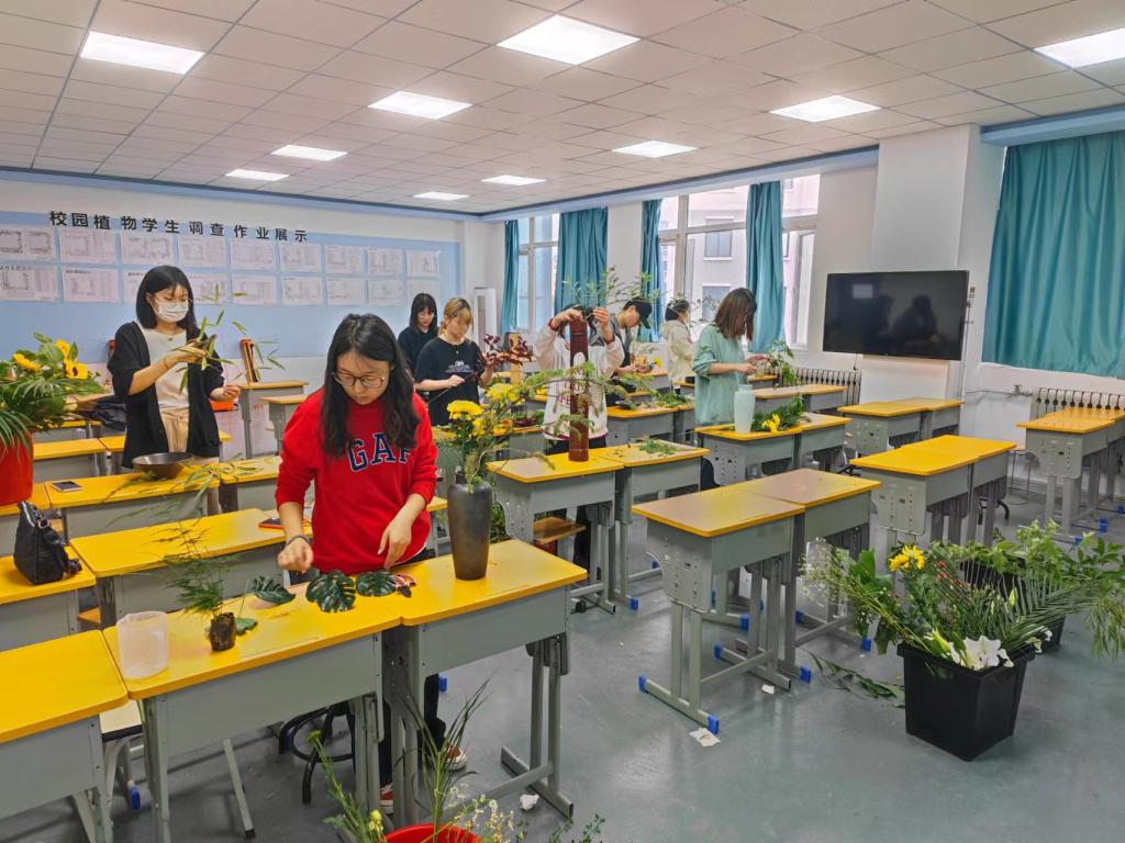 活动融知识性、艺术性和趣味性于一体,学生们根据课堂所学知识,选取花材、花器,把握比例、色彩、质感、韵律要求,将自己丰富的情感蕴藏于花与叶之中,制作出一盆盆错落有致、生机盎然的插花作品。“以花育人,以花感人”,本次活动既为学生插花技艺搭建了交流平台,丰富了校园文化生活,又提升了学生技能水平。