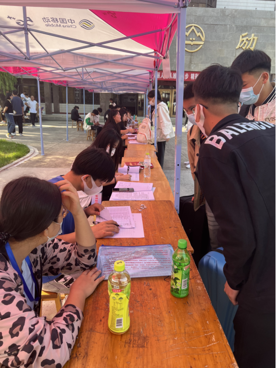 为确保新生报到工作顺利开展,中专教学部提前召开迎新工作会议,积极筹备开学各项工作。迎新现场,新生经过测温通道,核验健康码、行程码和48小时核酸检测阴性证明,完成入校核酸检测后进入校园,核对姓名、签订疫情防控承诺书、自测体温报告单、分配宿舍、领取被褥等有条不紊地进行,学生志愿服务人员解决疑难困惑,热心地帮助新生搬运行李,整个入学过程井然有序。
