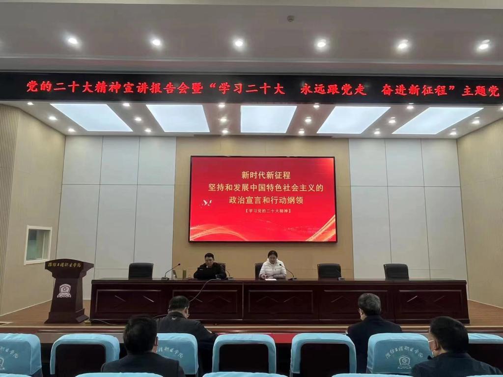 宣讲团成员从“不断提高政治站位,深刻认识党的二十大的重要意义”“紧紧围绕‘五个牢牢把握’,深入领会党的二十大的精神要义”“深刻理解把握过去5年的工作和新时代10年的历史性成就和历史性变革的里程碑意义”“深刻理解把握新时代新征程中国共产党的使命任务、”“深刻理解把握中国式现代化的中国特色和本质要求”“全面建设社会主义现代化国家、全面推进中华民族伟大复兴的战略谋划”“深刻理解把握坚持党的全面领导和全面从严治党重大部署”等方面进行了宣讲,对党的二十大报告中的新观点、新论断、新思想进行了详细分析和解读。大家表示,将深入学习宣传贯彻党的二十大精神,以只争朝夕的精神实干笃行,为学院高质量发展作出新的更大贡献。