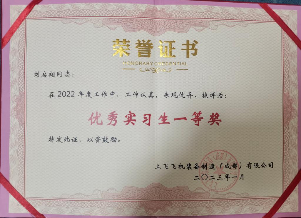 近日,上飞飞机装备制造(成都)有限公司对2022年岗位实习学生开展了评优选先活动,航空工程学院学生获用人单位高度评价,6名学生获优秀实习生称号,其中刘启翔荣获“优秀实习生一等奖”,获公司奖励5000元,并作为优秀实习生获奖代表上台分享了获奖感言。上飞飞机装备制造(成都)有限公司对航空工程学院飞机机电设备维修专业人才培养质量给予高度评价,对实习学生“在岗一分钟,尽职60秒”的工作态度和在实习岗位上的突出表现高度认可。近年来,航空工程学院积极落实学校实习管理相关规定,校企密切配合,扎实规范做好学生实习管理工作,完善《航院学生实习管理办法》《岗位实习学生联系明白卡》等,严格按照“规范实习组织,加强实习管理,保障实习安全,强化应急管理”24字要求开展实习工作,学生实习技术技能水平和综合素养不断提升,赢得了实习单位的高度认可。