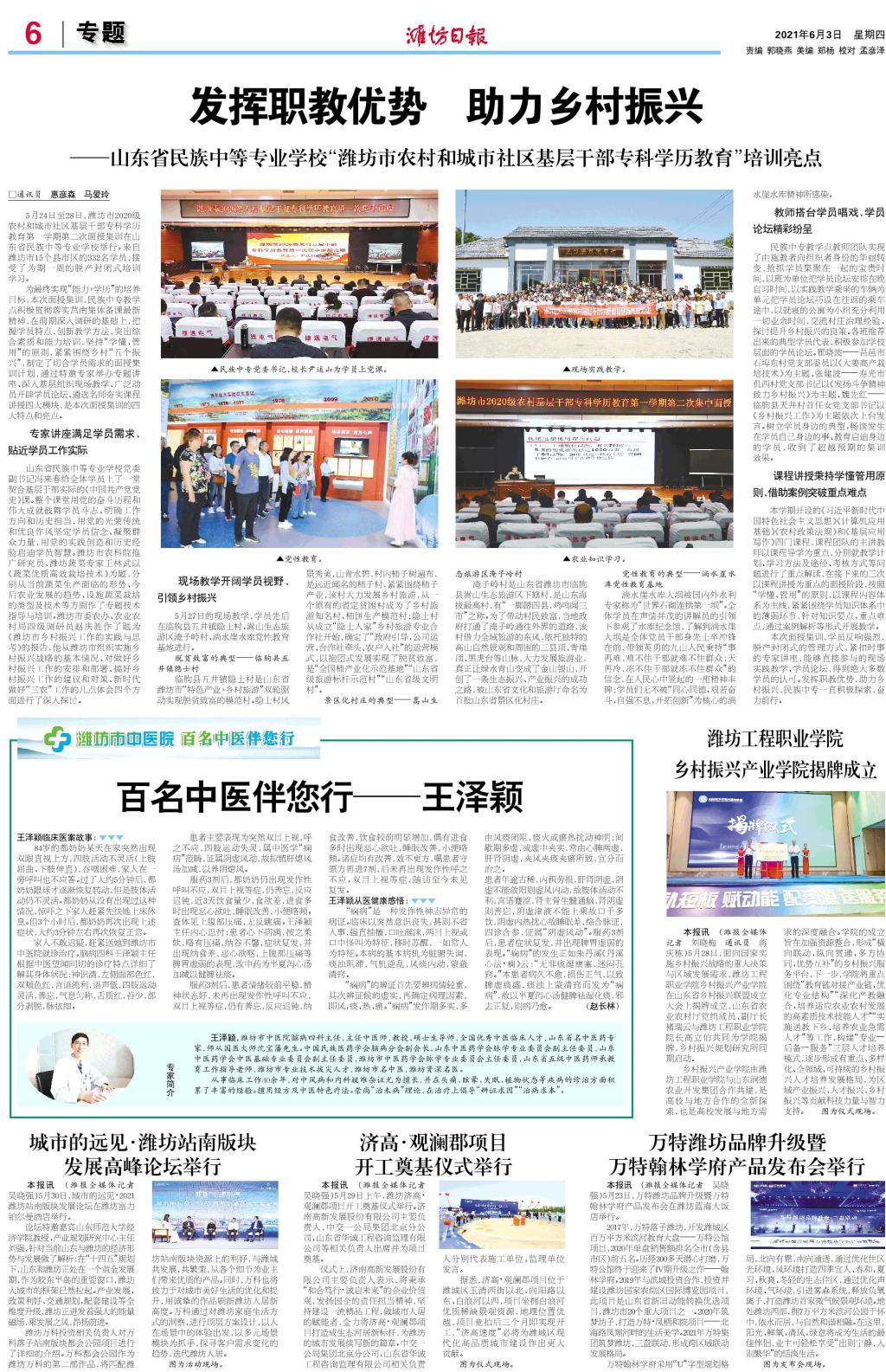 潍坊日报:潍坊工程职业学院乡村振兴产业学院揭牌成立
